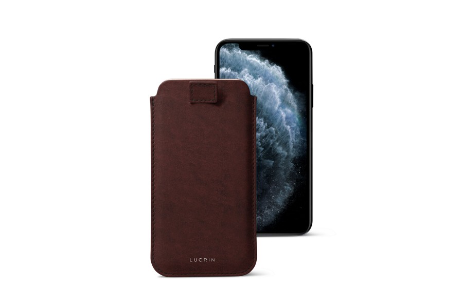 Capa com Aba para iPhone 11 Pro Max - Castanho Escuro - Couro Vegetal