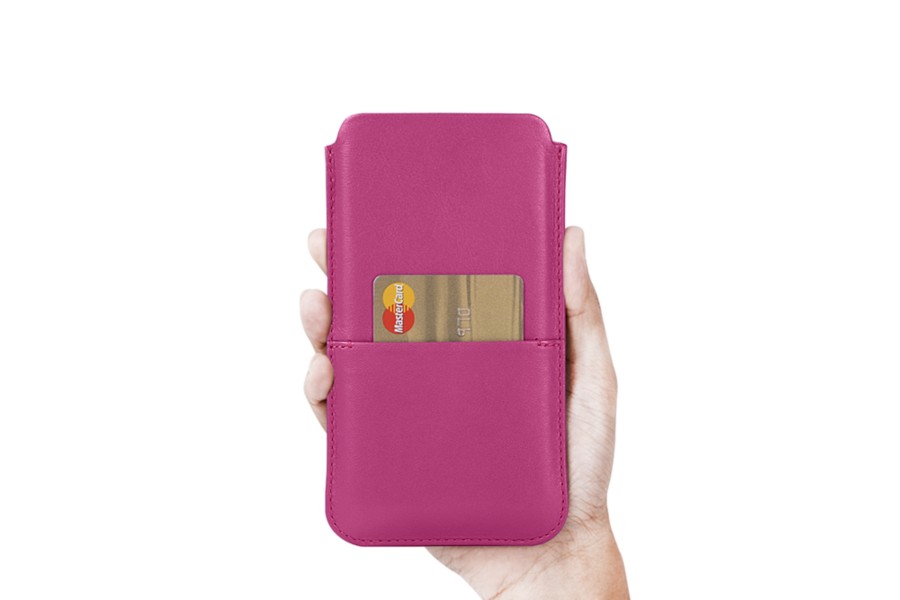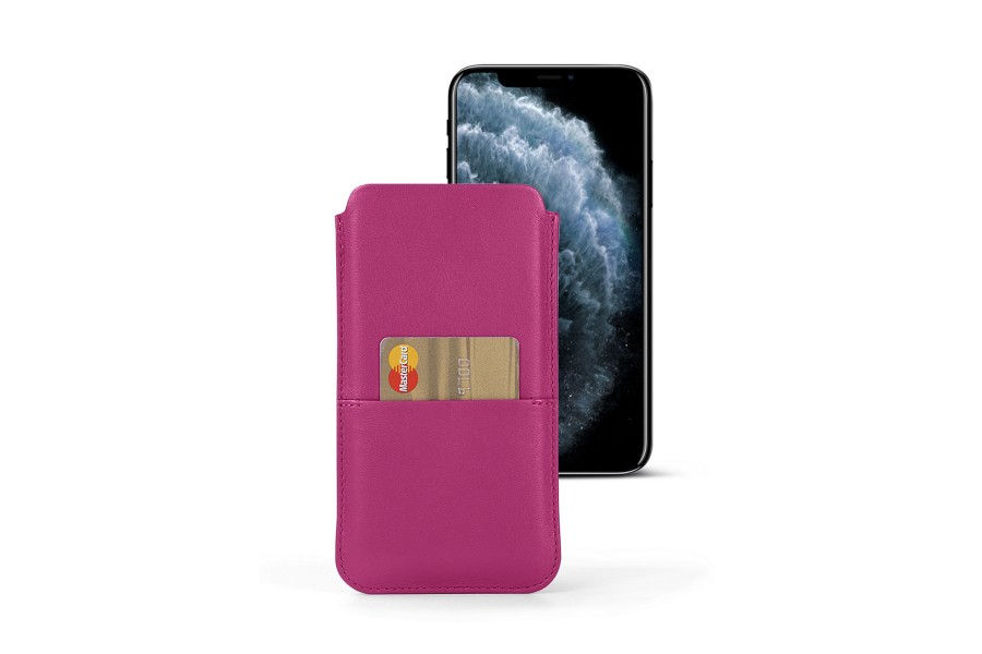 Capa com Bolso para iPhone 11 Pro Max - Magenta - Couro Suave