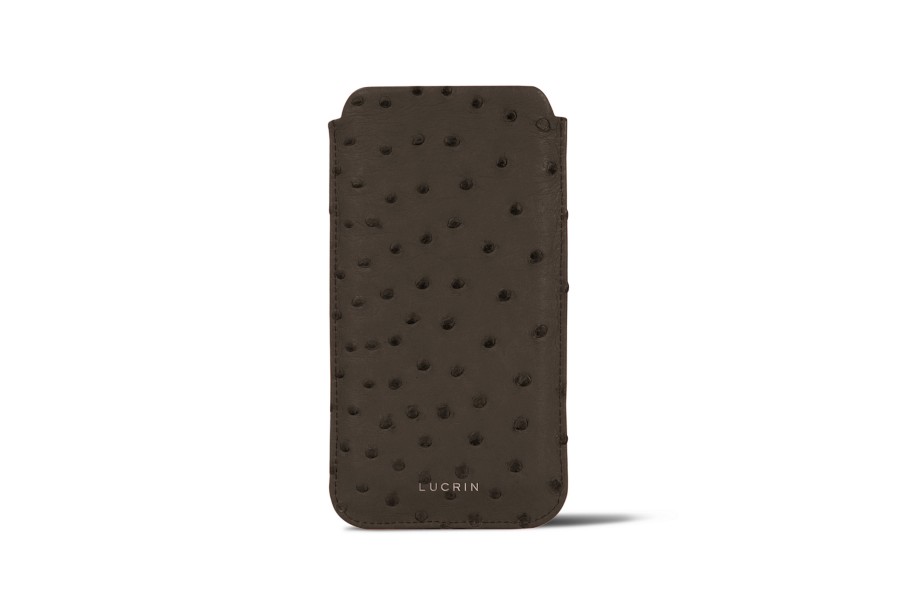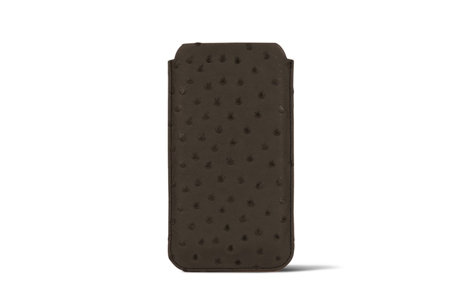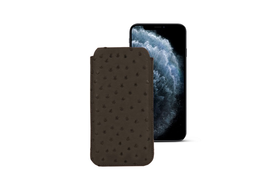 Capa Clássica para iPhone 11 Pro Max - Castanho Escuro - Couro Real de Avestruz