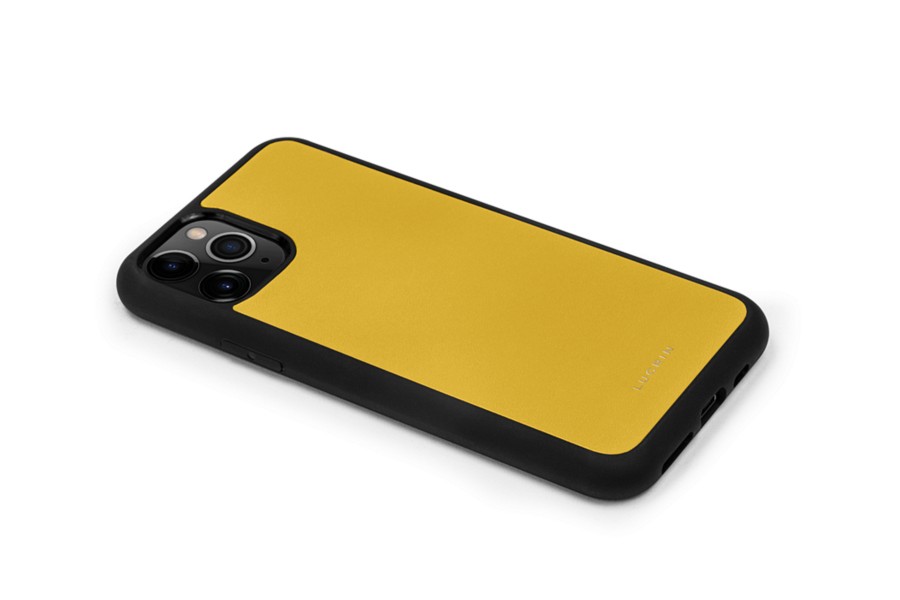 Capa Personalizável para iPhone 11 Pro Max - Amarelo Sol-Castanho Escuro - Couro Suave
