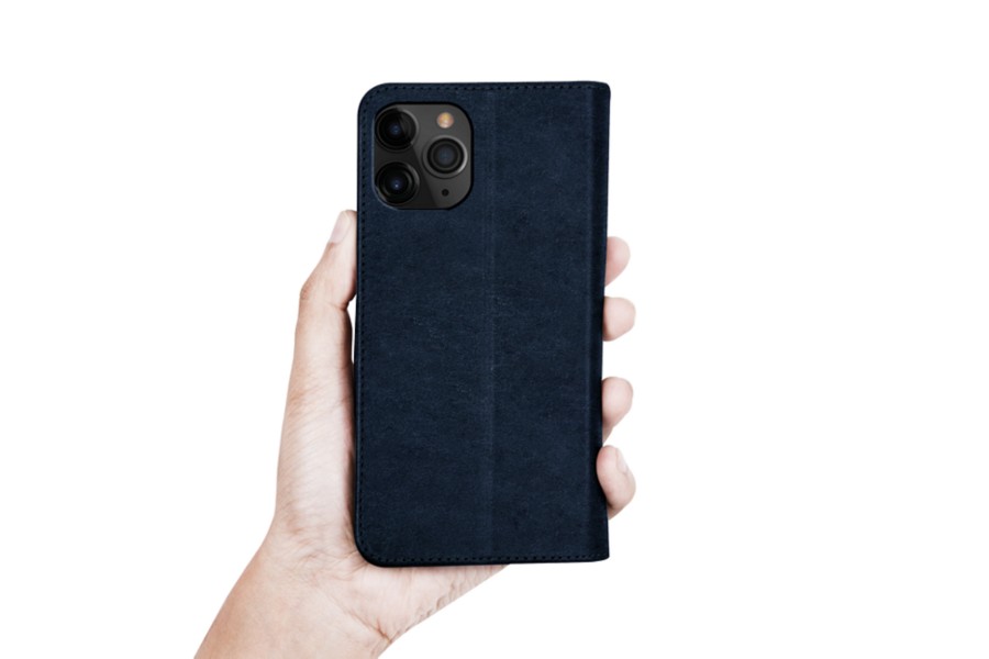 Capa/Carteira para iPhone 11 Pro Max - Azul Escuro - Couro Vegetal