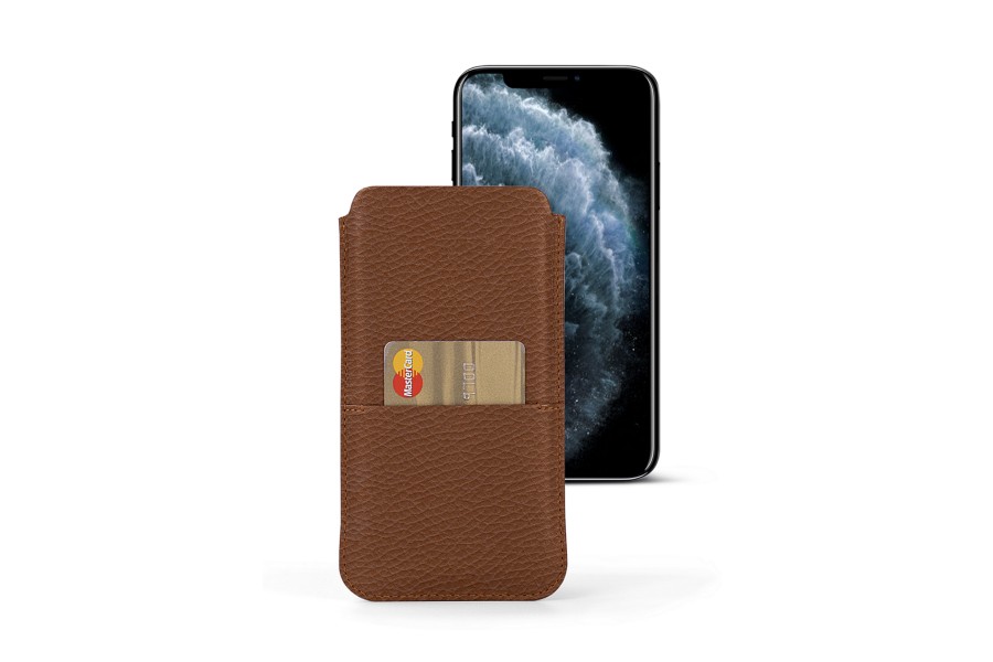 Capa com Bolso para iPhone 11 Pro - Castanho Tan - Couro Granulado