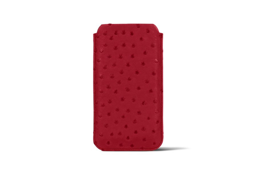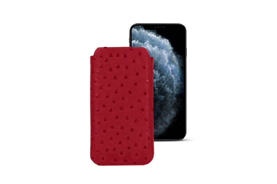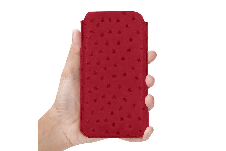 Capa Clássica para iPhone 11 Pro - Vermelho - Couro Real de Avestruz