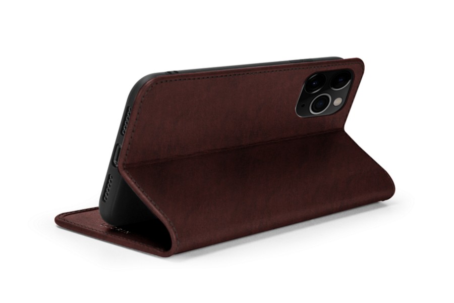 Concebida para os minimalistas, esta carteira para iPhone 11 Pro protege o seu telemóvel e tem também espaço para dinheiro e cartões. Possui outro recurso muito útil que permite dobrá-la, criando um suporte para exibição de vídeos. Esta carteira de couro pode ser personalizada com uma gravação exclusiva ou uma cor de costura contrastante, por exemplo. O design fino e semirrígido garante uma proteção confiável para o seu smartphone.