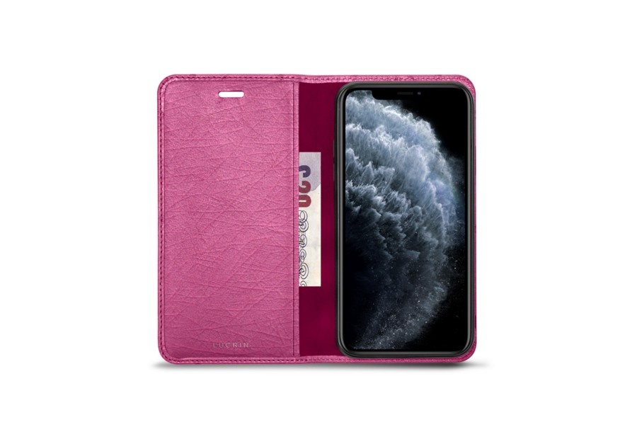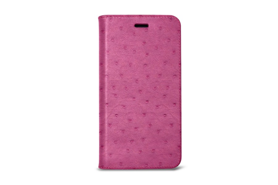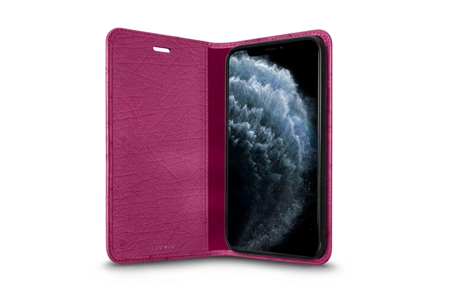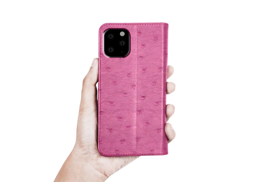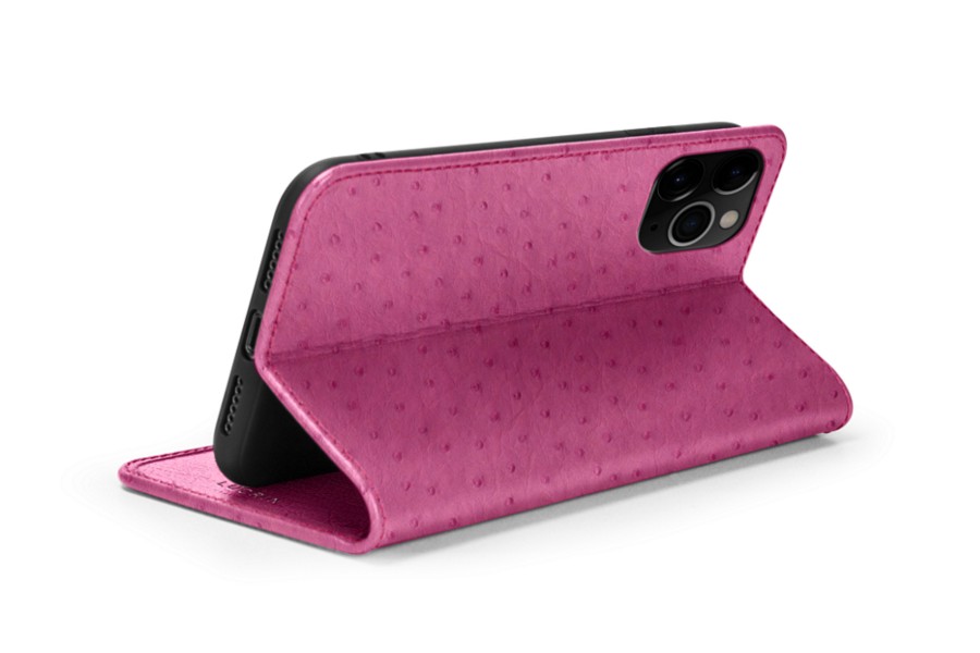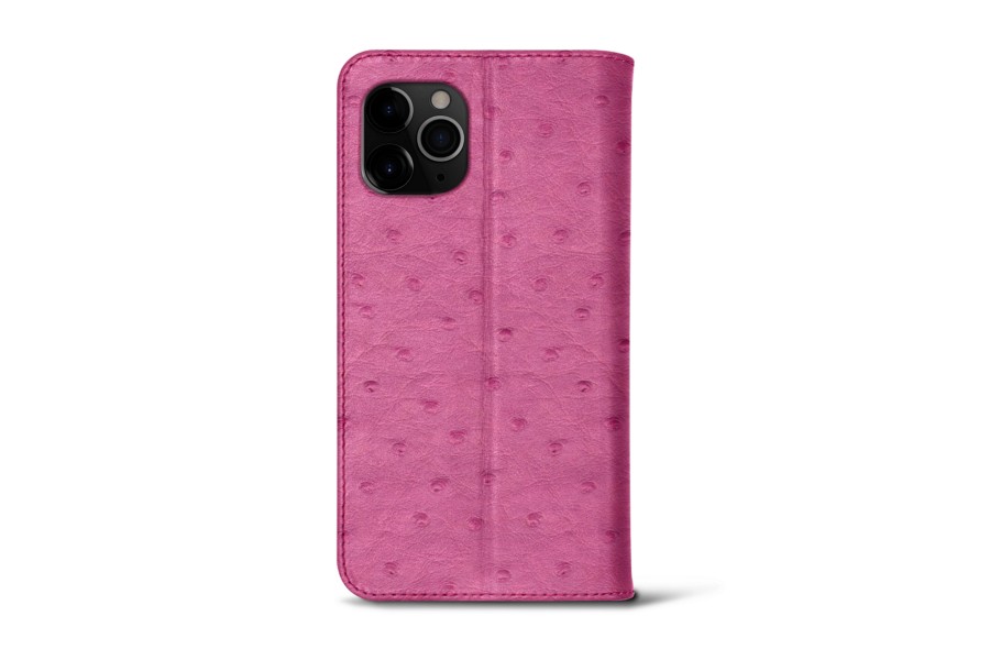 Capa/Carteira para iPhone 11 Pro - Magenta - Couro Real de Avestruz