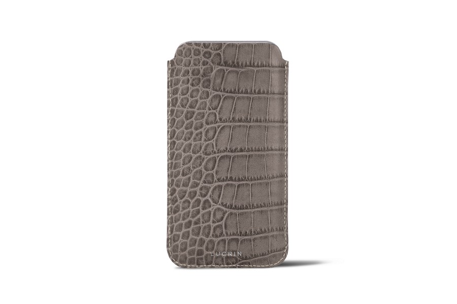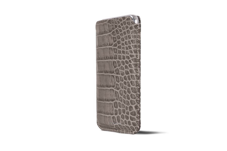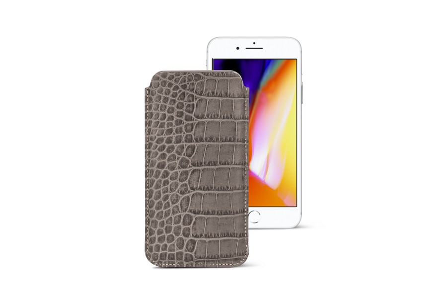 Capa fina para iPhone 8 - Taupe Claro - Couro de Bezerro - Estilo Crocodilo