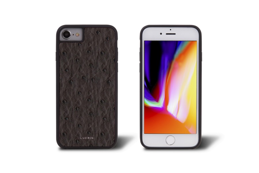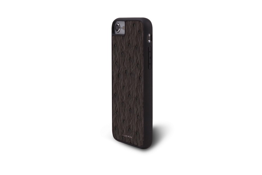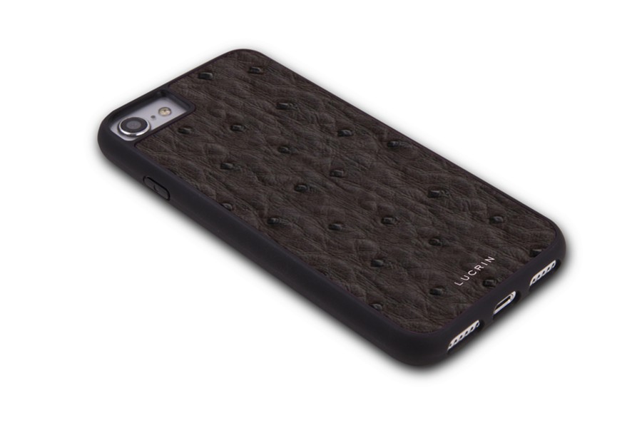 Capa para iPhone 8 - Castanho Escuro - Couro Real de Avestruz