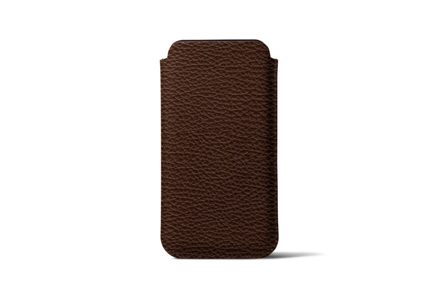 Capa com Aba para iPhone SE - Castanho Escuro - Couro Granulado