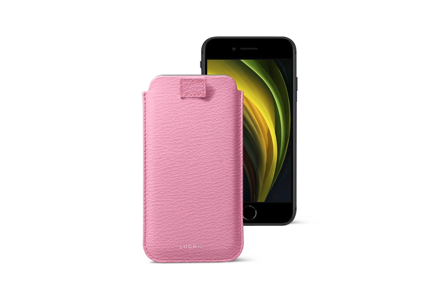 Capa com Aba para iPhone SE - Rosa - Couro de Cabra