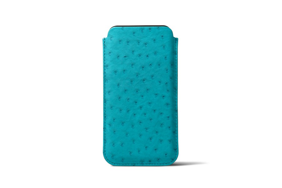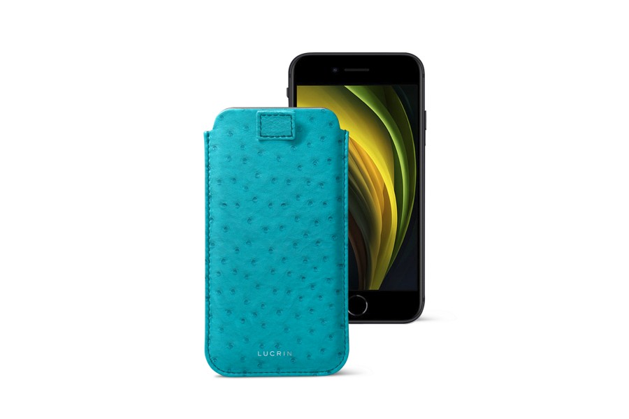 Capa com Aba para iPhone SE - Turquesa - Couro Real de Avestruz