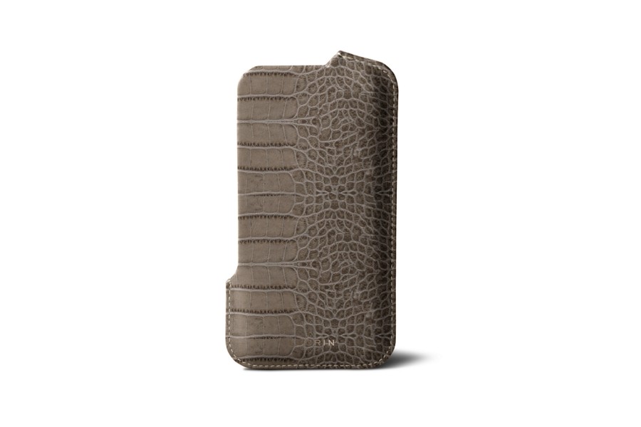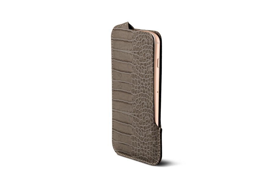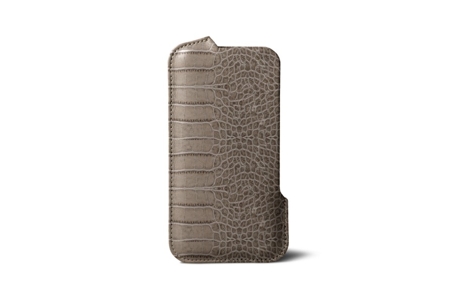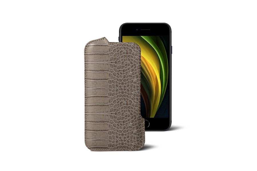 Capa com Abertura para iPhone SE - Taupe Claro - Couro de Bezerro - Estilo Crocodilo