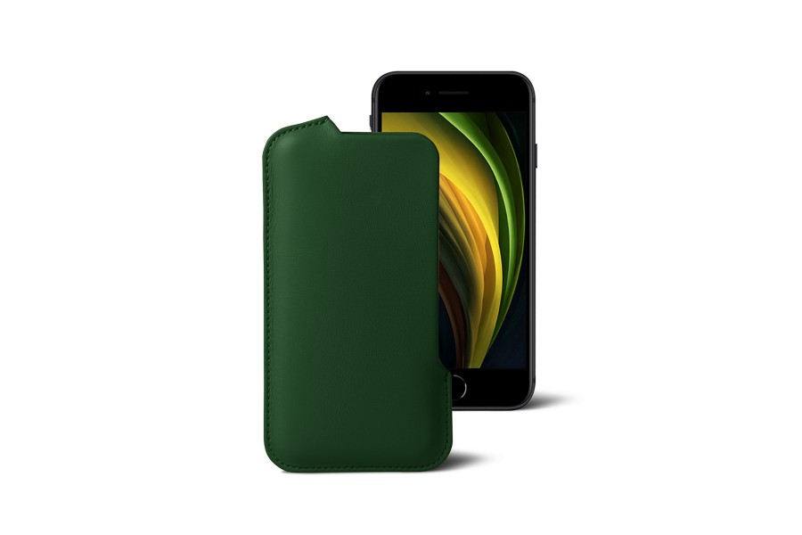 Capa com Abertura para iPhone SE - Verde Escuro - Couro Suave