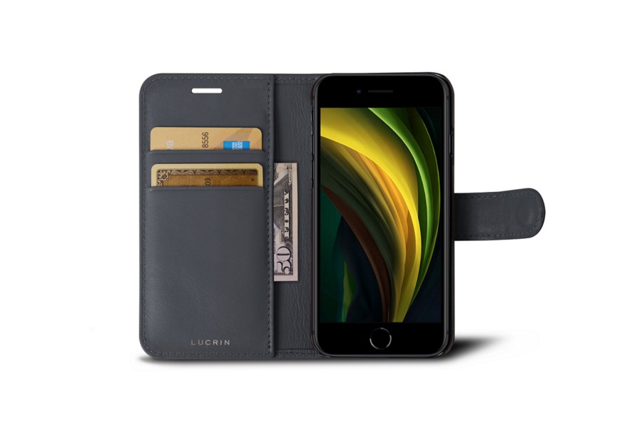 Esta é a capa tipo carteira luxuosa para iPhone SE. Elaborada com grande precisão, esta capa multifuncional é ideal especialmente quando se está em movimento. Pode colocar 2 cartões de crédito e algumas notas dobradas nesta capa de couro genuíno graças aos espaços e ao bolso interno. Quanto ao iPhone, fica perfeitamente seguro, no lado direito. O fecho através de uma aba magnética adiciona um toque de elegância e segurança. Todas entradas, a coluna e a câmara ficam completamente acessíveis, sem a necessidade de remover o telemóvel da capa. É ainda possível personalizar esta carteira para iPhone SE - uma ideia original para presente.