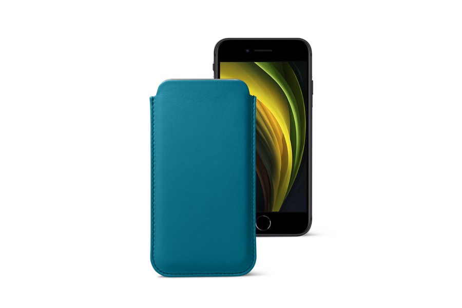 Capa Clássica para iPhone SE - Turquesa - Couro Suave