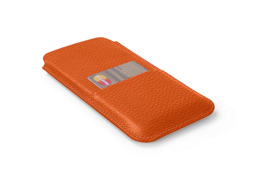 Capa com Bolso para iPhone SE - Laranja - Couro Granulado
