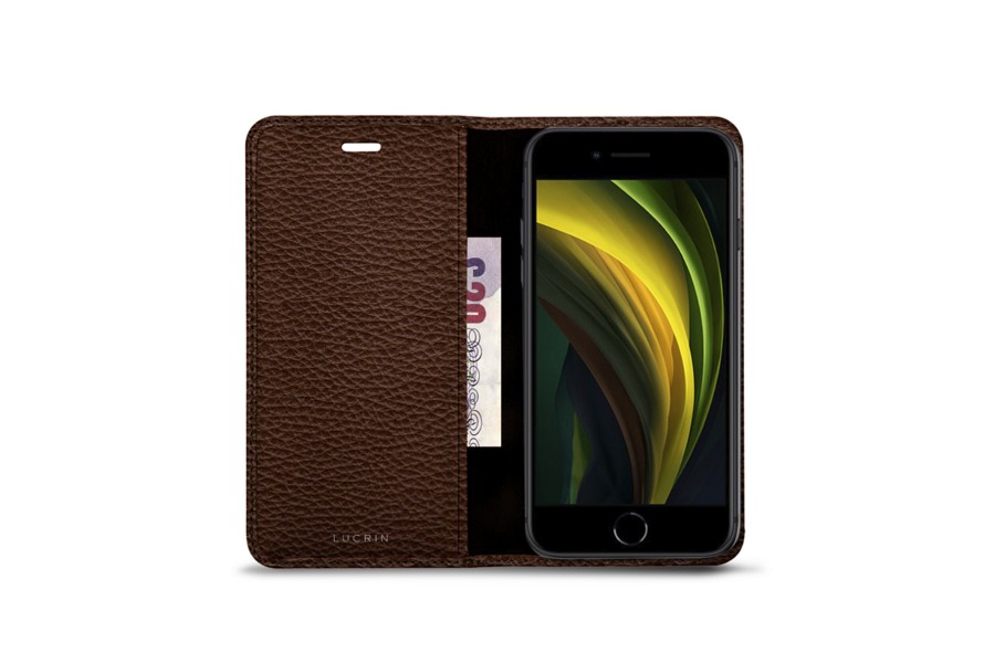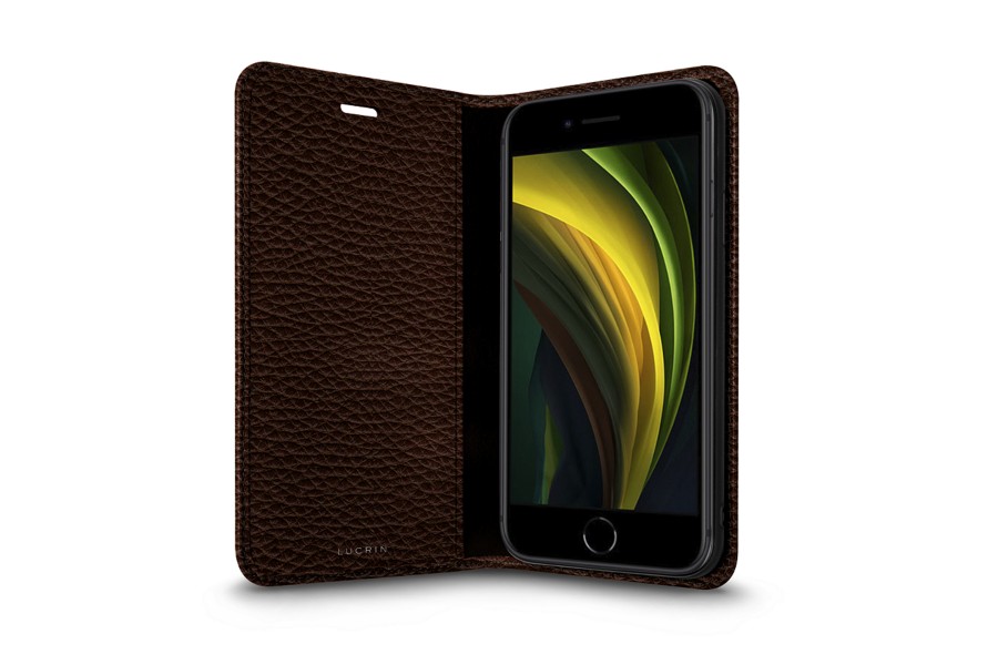 Esta proteção de couro para o iPhone SE é prática e elegante. É a versão simples da carteira de luxo para iPhone com um grande bolso interno, e que permite visualizar os seus vídeos no modo paisagem. Leve e compacta, o iPhone SE ficará perfeitamente seguro no interior. Disponível numa grande variedade de couros e cores, permite-lhe criar a sua capa de couro personalizada.