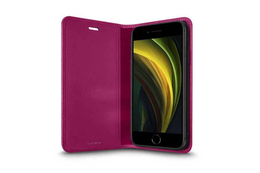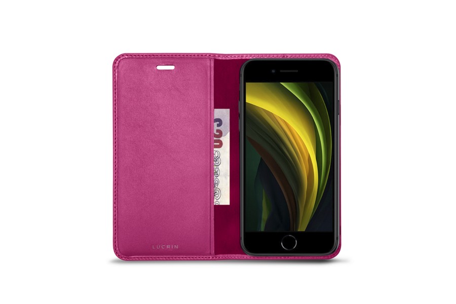 Capa/Carteira Personalizável para iPhone SE - Magenta - Couro Suave