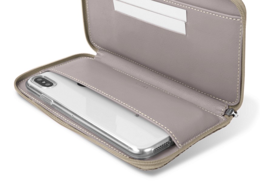 Mais do que uma simples capa para o iPhone X, esta pequena bolsa é um dos produtos favoritos dos nossos clientes com acessórios da Apple. Além de oferecer uma proteção elegante ao seu iPhone, esta bolsa também permite guardar no bolso interior alguns cartões de crédito, bilhetes, notas ou outros papeis. É realmente prática para saídas curtas, especialmente se quiser carregar pouca coisa. O interior em microfibra protege perfeitamente o ecrã.