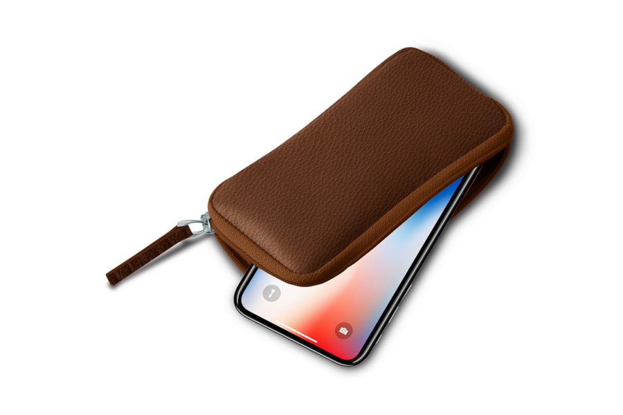 Capa com Fecho para iPhone X - Castanho Tan - Couro Granulado