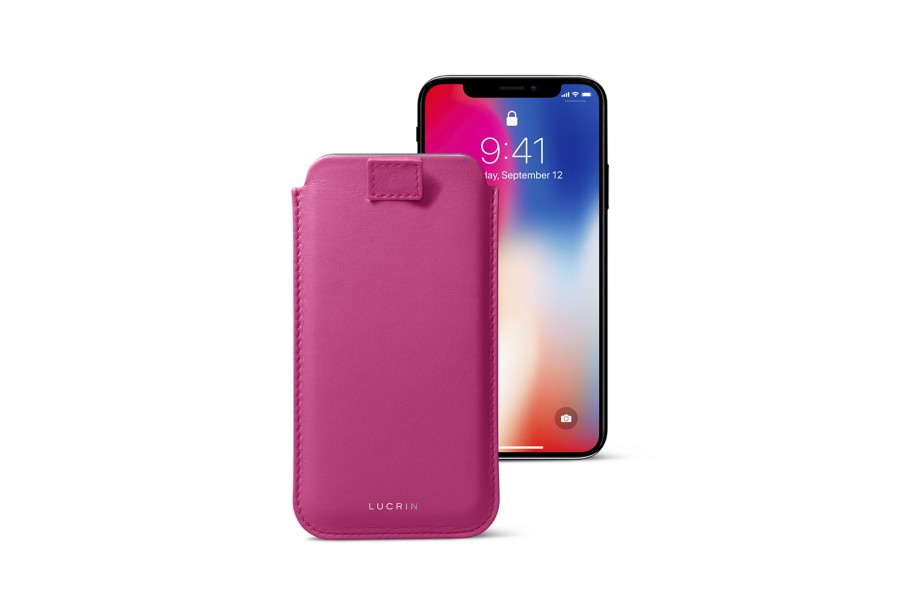 Capa para iPhone X com aba - Magenta - Couro Suave