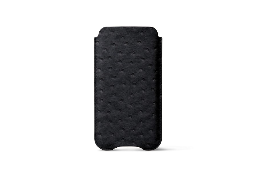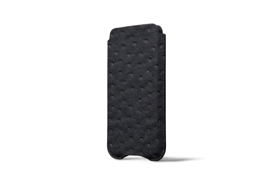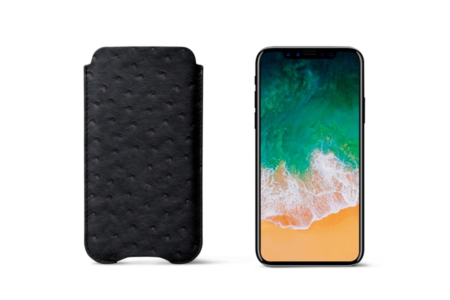 Capa protetora para iPhone X - Preto - Couro Real de Avestruz