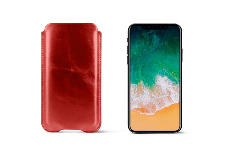 Capa protetora para iPhone X - Vermelho - Couro Metálico
