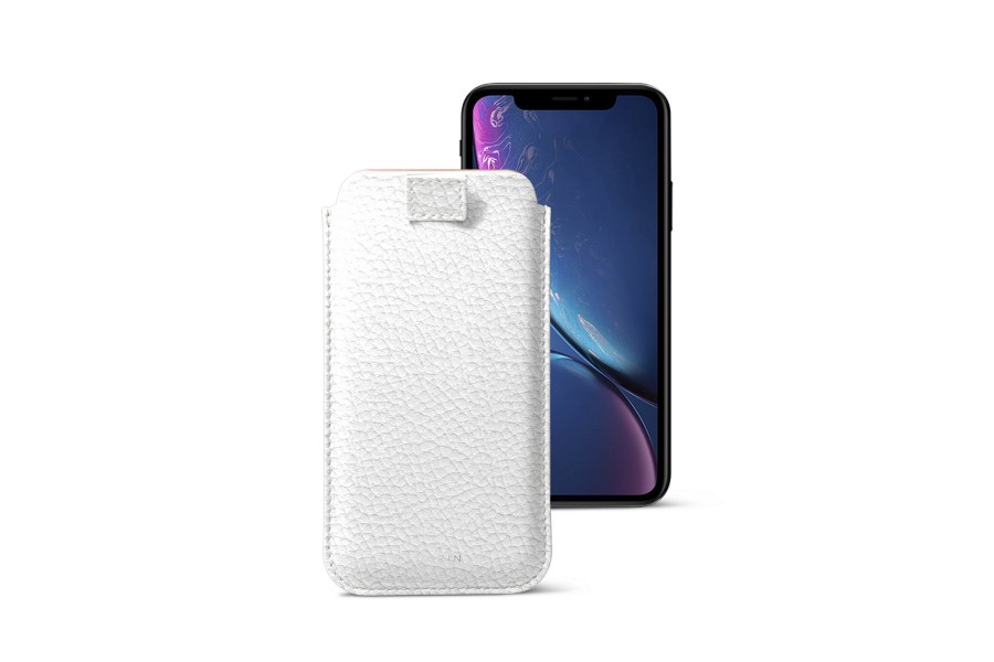 Capa iPhone XR com aba - Branco - Couro Granulado