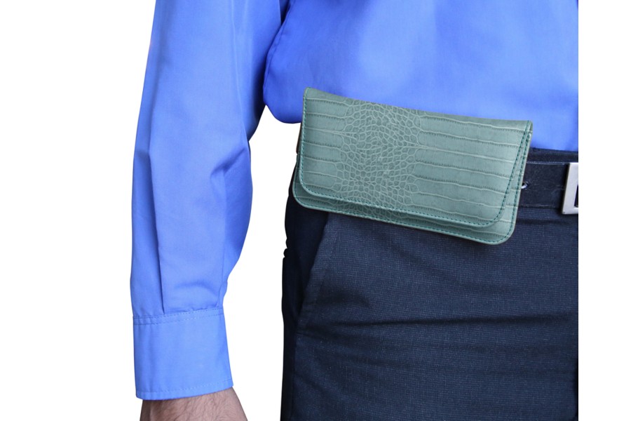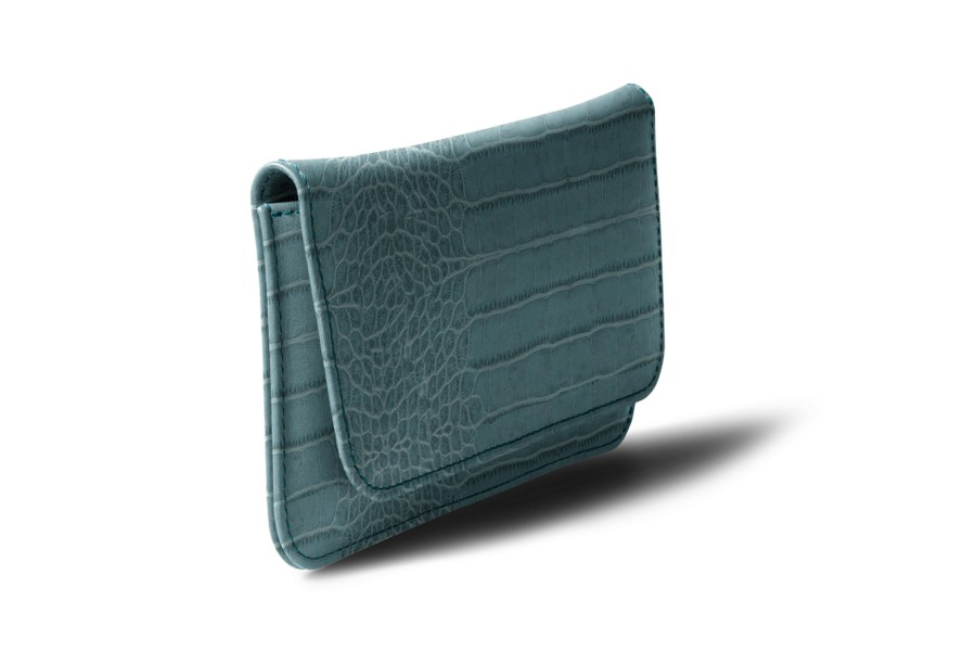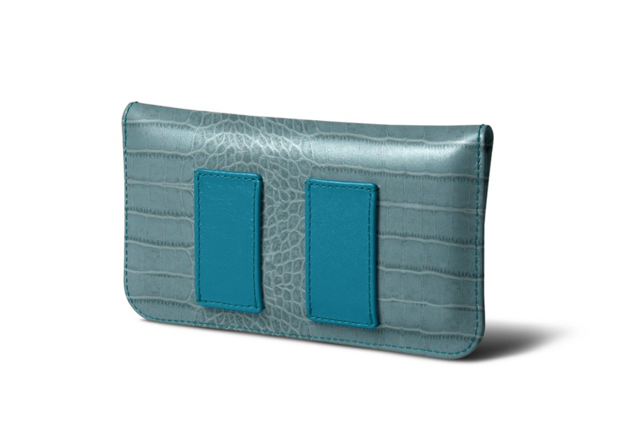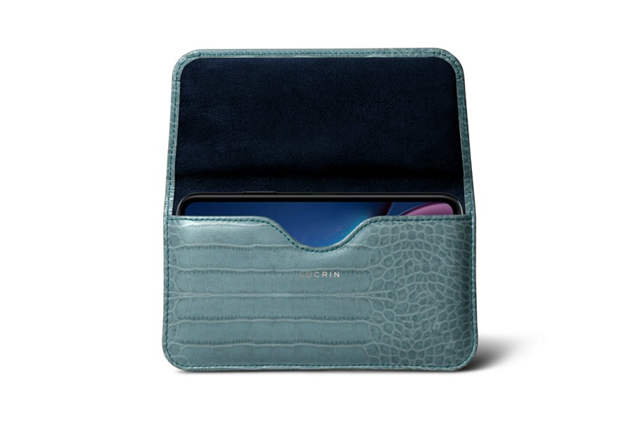 Capa para cinto para iPhone XR - Turquesa - Couro de Bezerro - Estilo Crocodilo