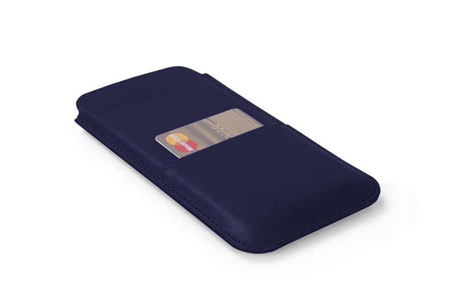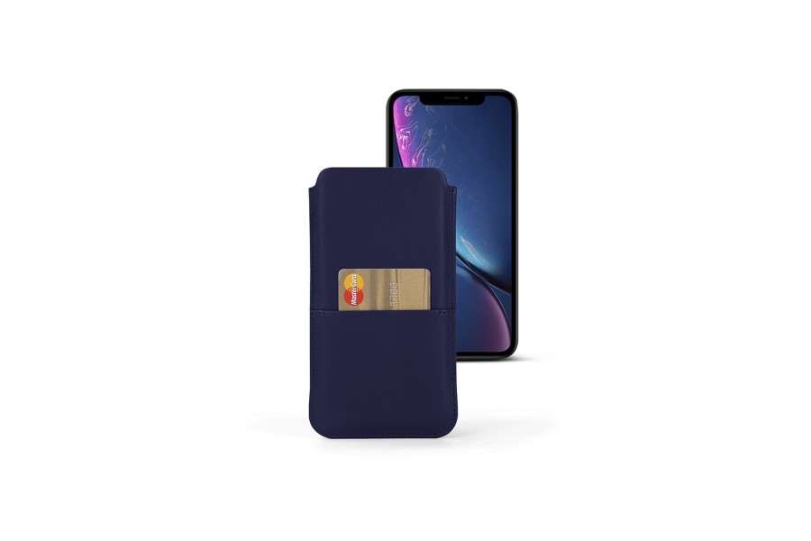 Capa para iPhone XR com bolso - Azul Escuro - Couro Suave