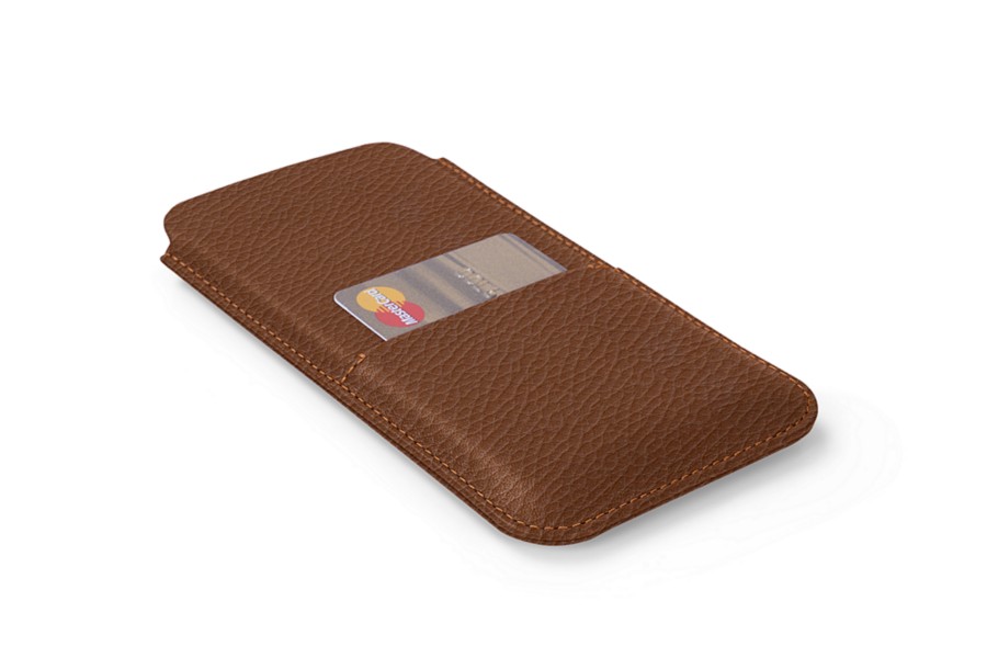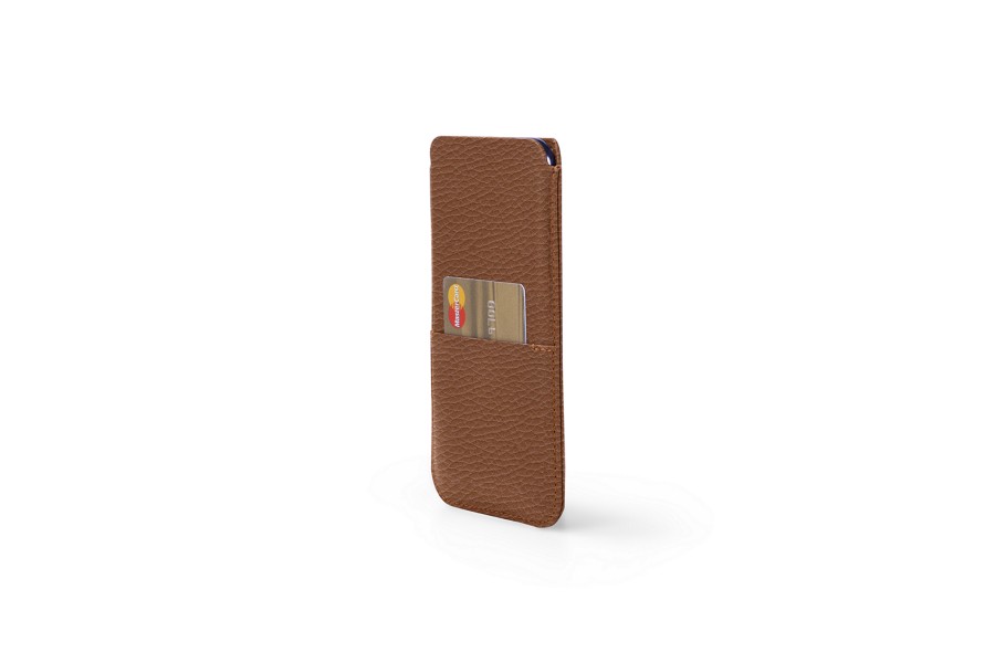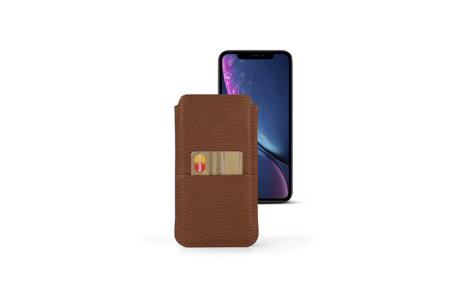 Capa para iPhone XR com bolso - Castanho Tan - Couro Granulado