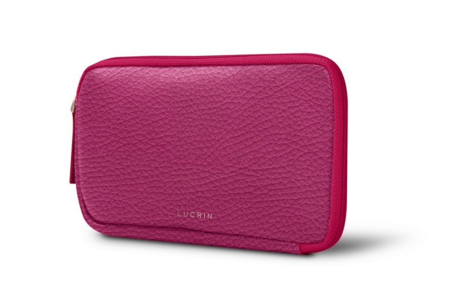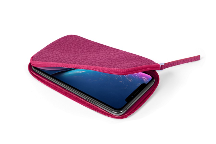 Carteira com fecho para iPhone XR - Magenta - Couro Granulado