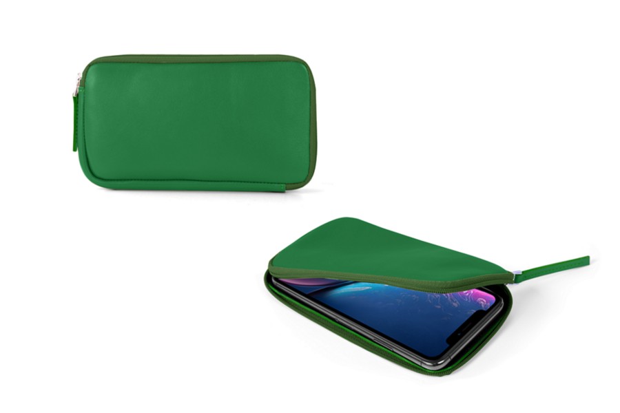 Esta carteira com fecho para iPhone é ideal para os que gostam de transportar apenas o essencial. Permite transportar o telefone, mas também possui bolso para um cartão, notas ou papeis. Pode até mesmo personalizar esta carteira com a gravação do seu nome ou iniciais, ou uma cor de costura contrastante para uma aparência diferente.