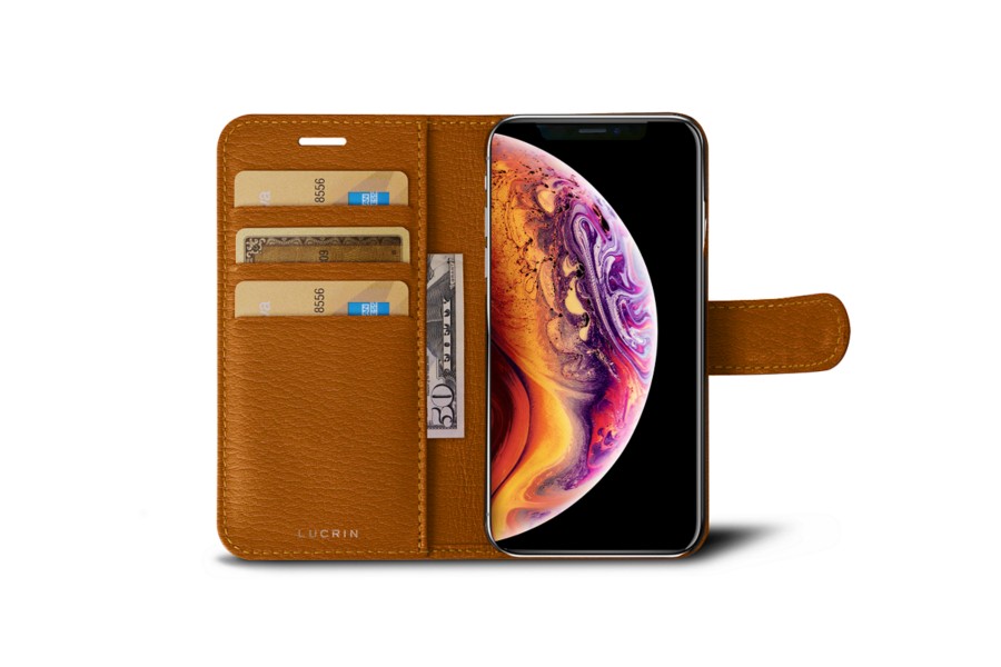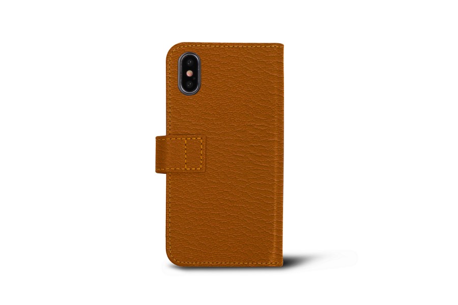 Capa Carteira para iPhone XS Max - Açafrão - Couro de Cabra