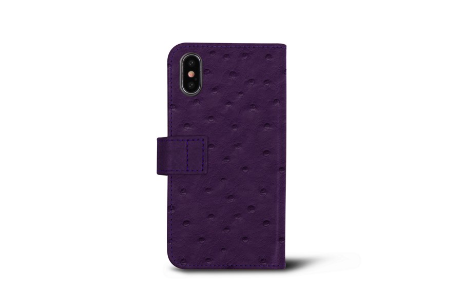 Capa Carteira para iPhone XS Max - Roxo - Couro Real de Avestruz
