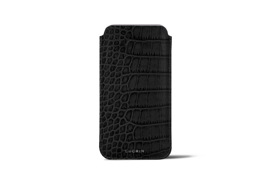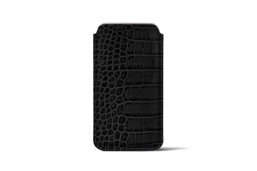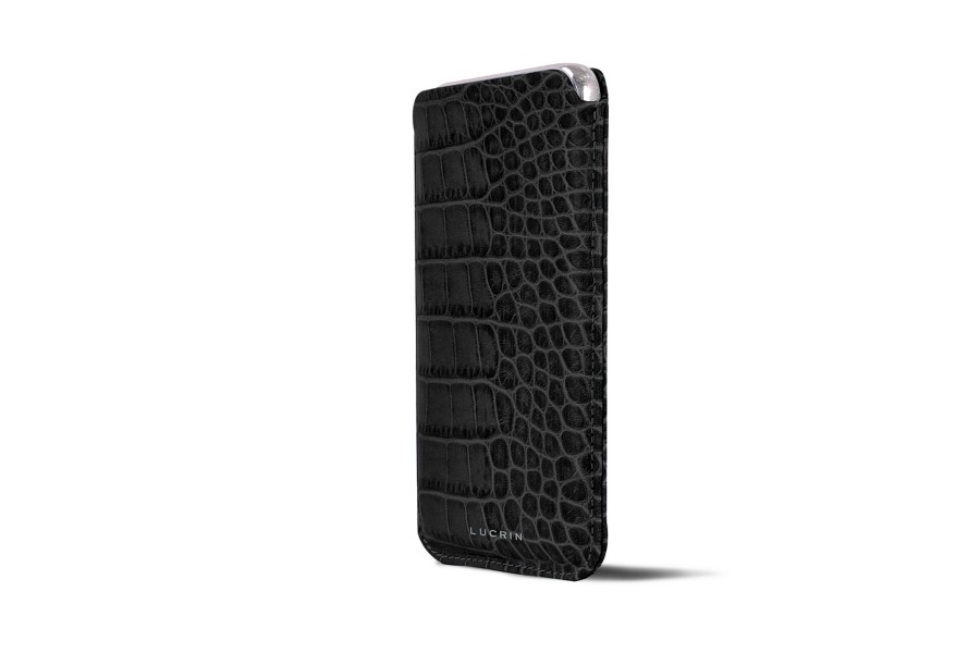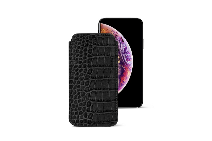 Capa Clássica para iPhone XS Max - Preto - Couro de Bezerro - Estilo Crocodilo