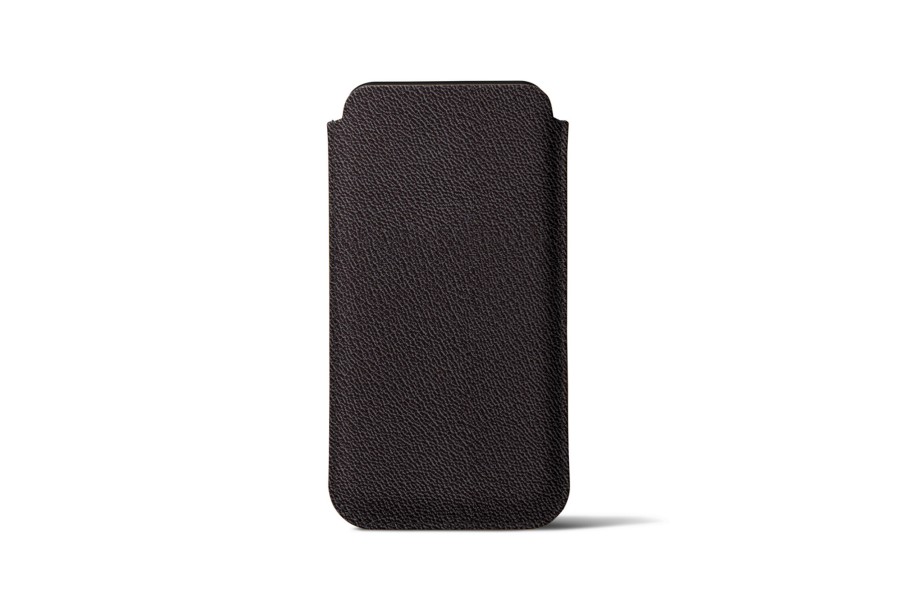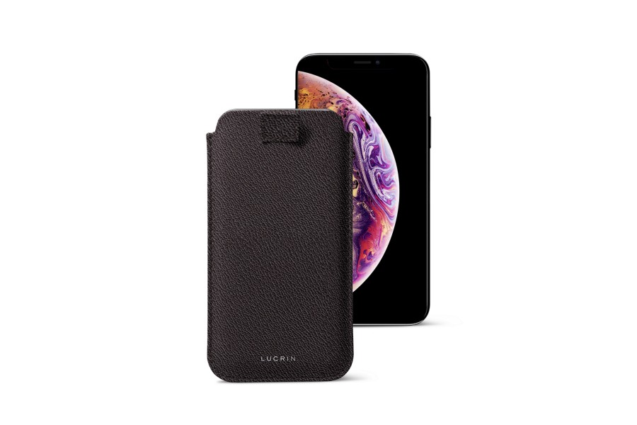 Capa para iPhone XS Max com aba de puxar - Castanho Escuro - Couro de Cabra