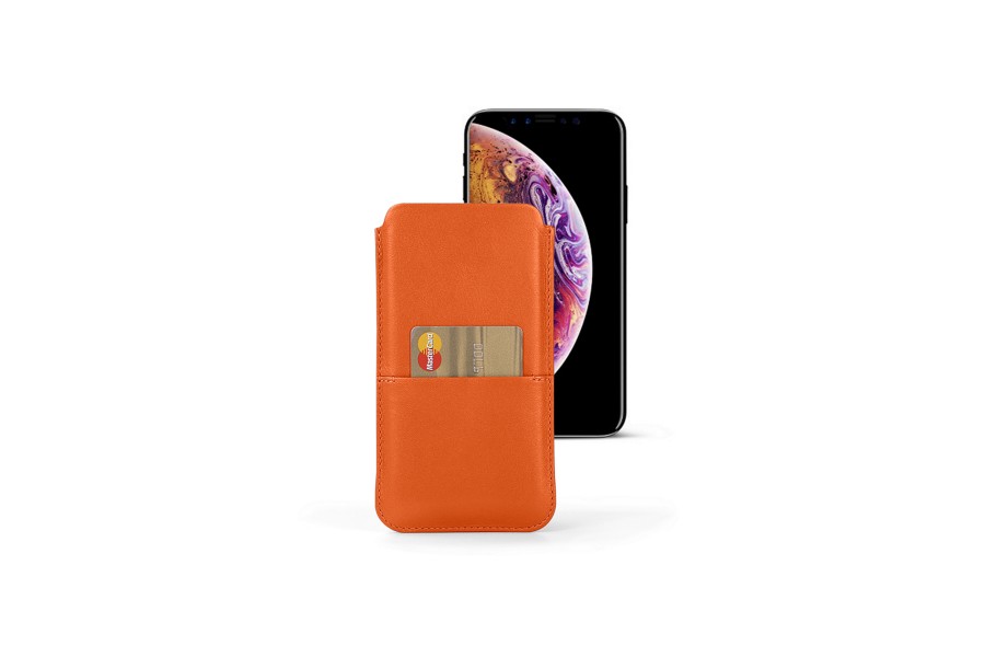 Capa para iPhone XS Max com bolso - Laranja - Couro Suave