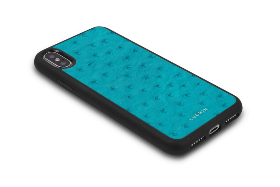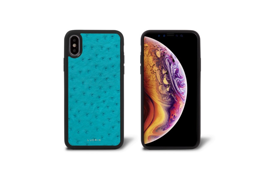 Capa para iPhone XS Max - Turquesa - Couro Real de Avestruz