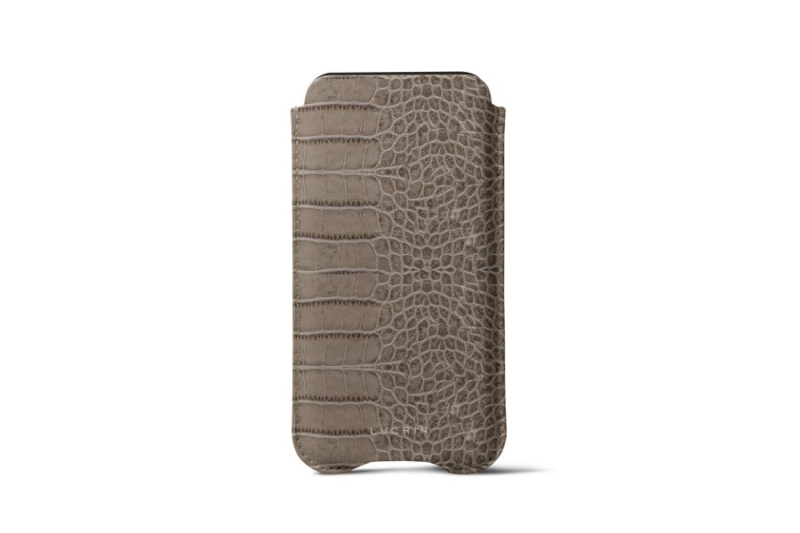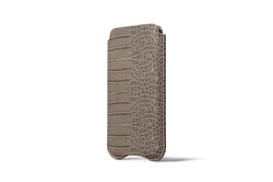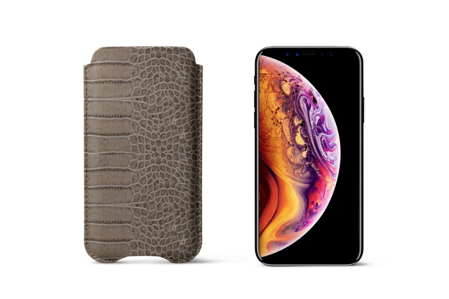 Capa protetora para iPhone XS Max - Taupe Claro - Couro de Bezerro - Estilo Crocodilo