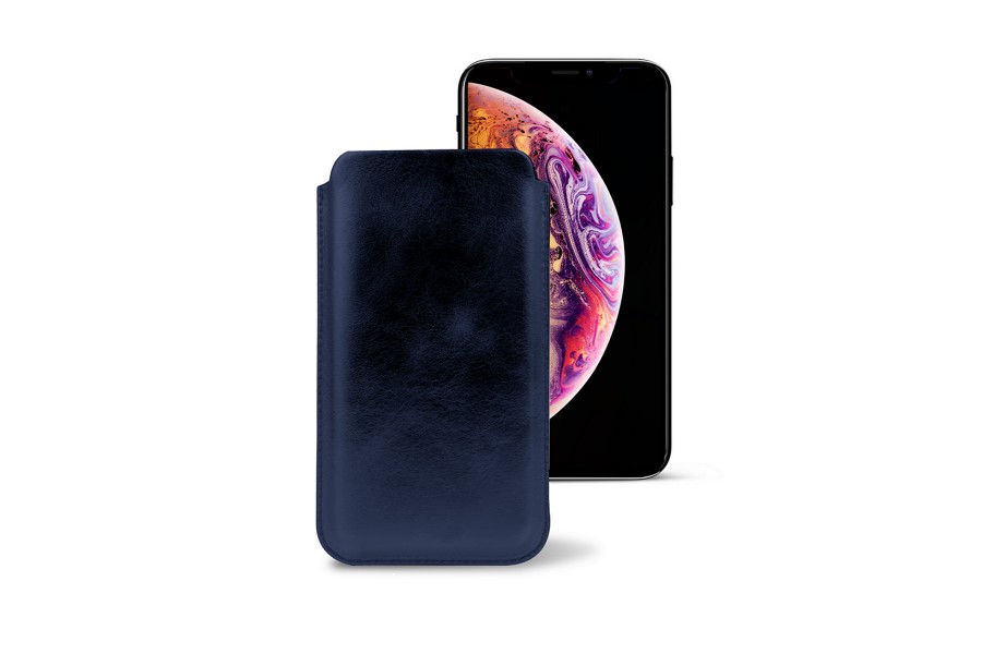 Capa clássica para iPhone XS - Azul Escuro - Couro Metálico