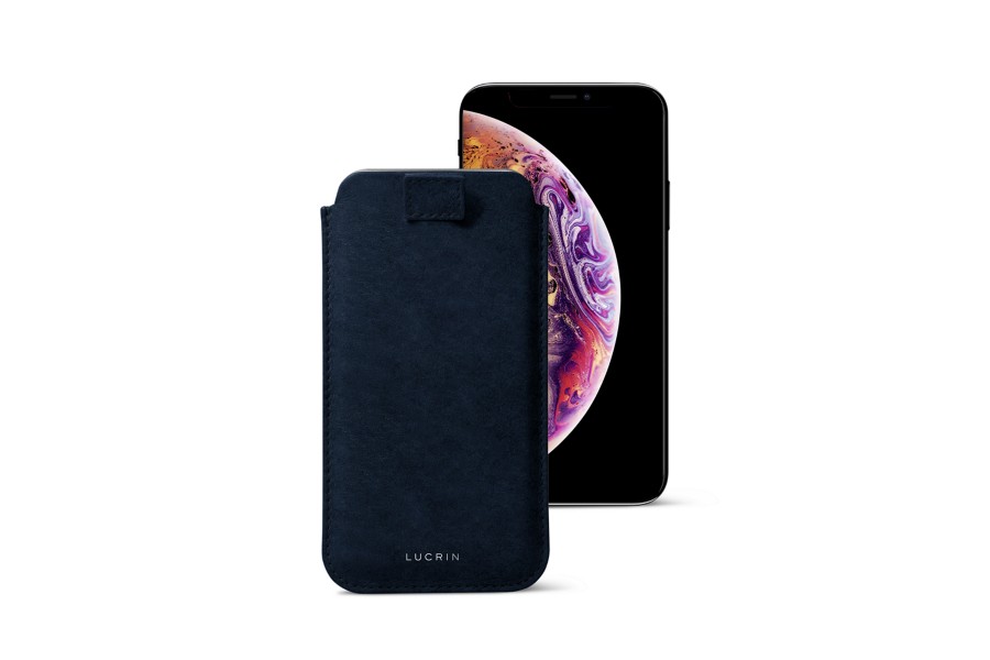Capa para iPhone XS com aba - Azul Escuro - Couro Vegetal