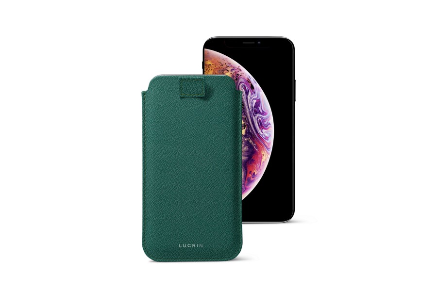 Capa para iPhone XS com aba - Verde Escuro - Couro de Cabra