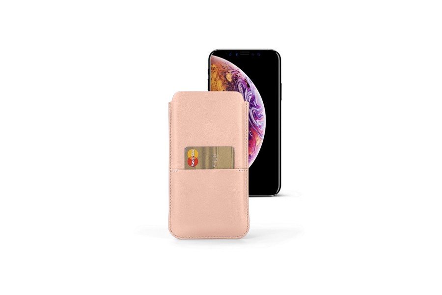 Capa para iPhone XS com bolso - Nude - Couro Suave