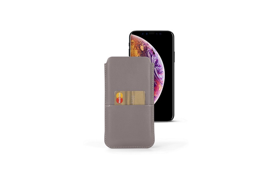 Capa para iPhone XS com bolso - Taupe Claro - Couro Suave