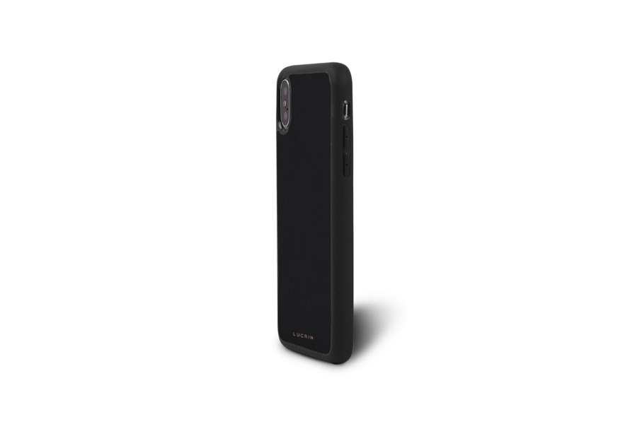 Capa personalizada para iPhone Xs - Preto-Branco - Couro Suave