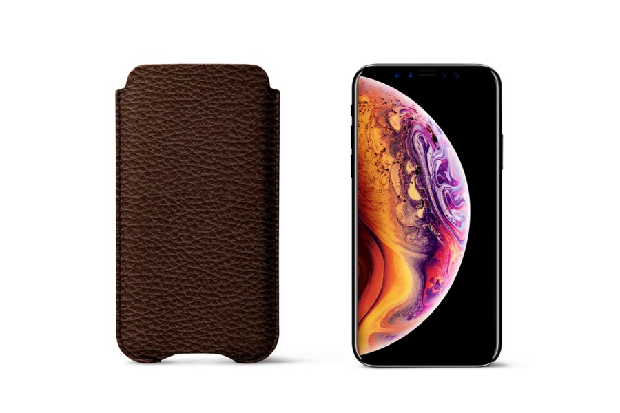 Capa protetora para iPhone XS - Castanho Escuro - Couro Granulado