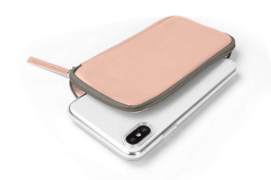 Carteira com fecho para iPhone XS - Nude - Couro Suave