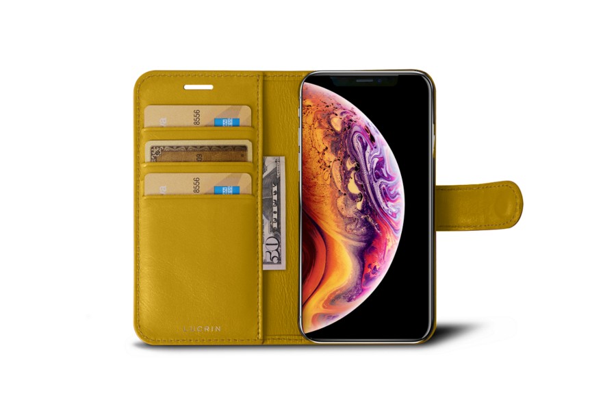 Carteira para iPhone XS - Amarelo Sol - Couro Suave