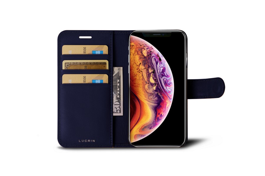 Carteira para iPhone XS - Azul Escuro - Couro Suave
