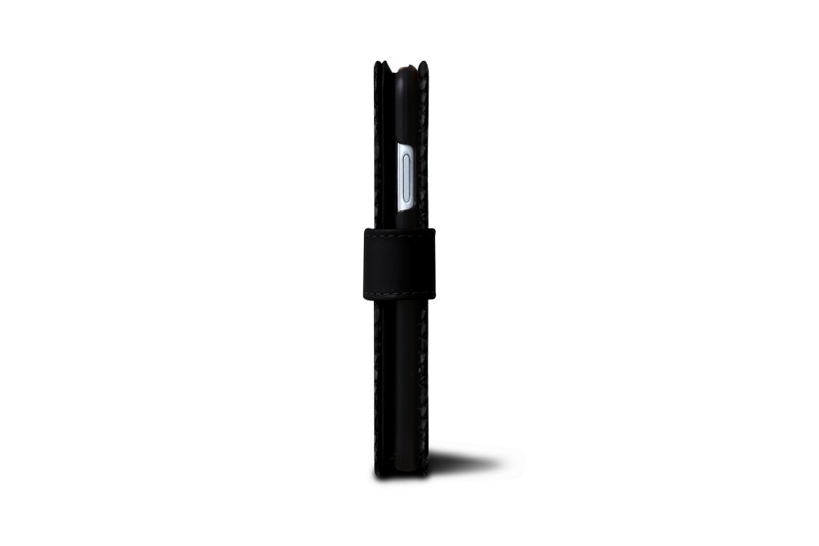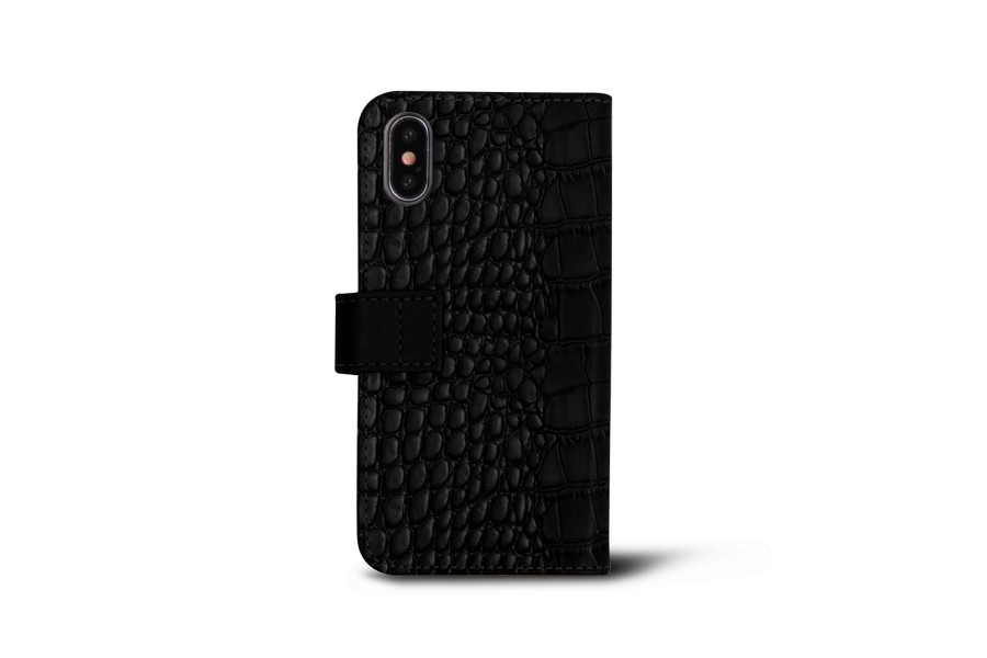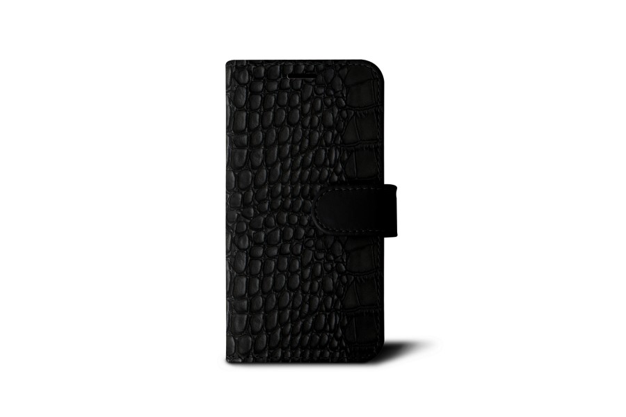 Carteira para iPhone XS - Preto - Couro de Bezerro - Estilo Crocodilo
